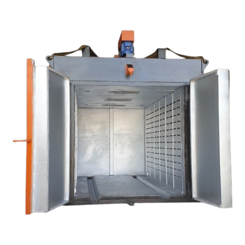 A trolley type oven is a specialized type of oven that incorporates a trolley or tray system for loading and unloading materials or products.